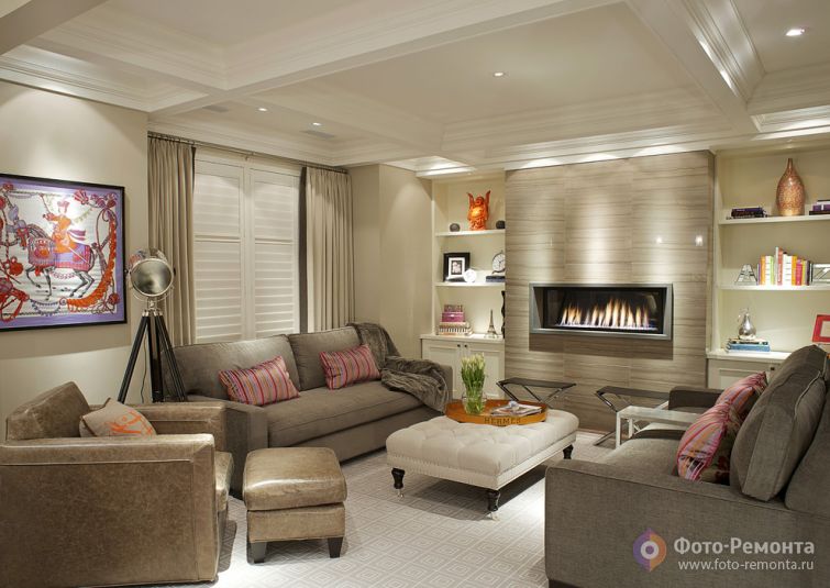 Универсальность бежевого обеспечила ему широкую востребованность в дизайне интерьеров. В бежевой гостиной может иметь место любой стиль, начиная от строгой классики и заканчивая современным модерном. Одним из основных преимуществ данного цвета является его хорошая сочетаемость со множеством ярких и нейтральных тонов - коричневым, серым, зеленым, красным, фиолетовым, черным и т.д. Мебель и шторы шоколадного цвета будут смотреться особенно эффектно на фоне песочно-бежевых стен. Наряду с этим, обои и пол более темного оттенка бежевого будут отлично подчеркивать утонченность мебели молочного цвета. Чтобы избежать монотонности в монохромном бежевом исполнении интерьера гостиной можно использовать один из двух приемов – яркие контрастные акценты либо различная фактура поверхности стен. Если стоит задача визуального увеличения пространства компактной гостиной, найти достойного конкурента бежевому будет отнюдь не просто. При этом атмосферу больших помещений, где веет холодом и пустотой, данный цвет наделит теплом и наполненностью.