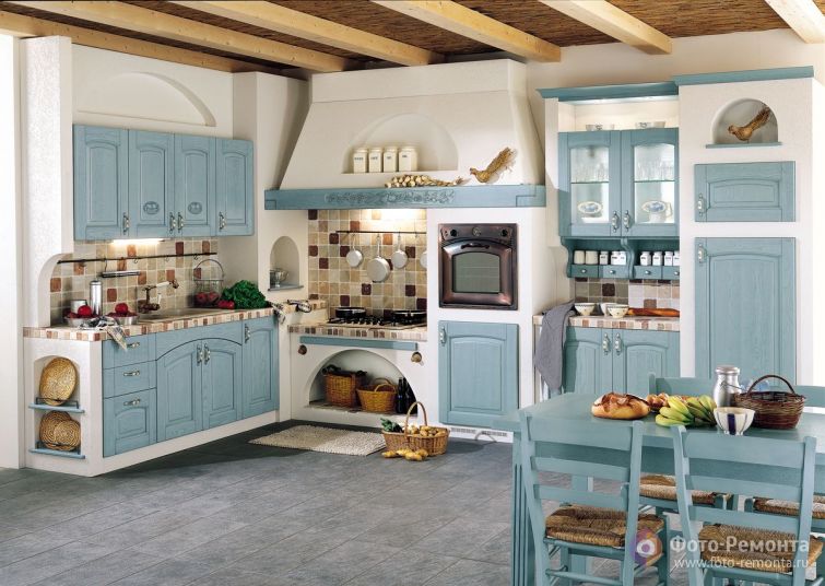 Бирюзовый дизайн кухни в стиле «прованс»