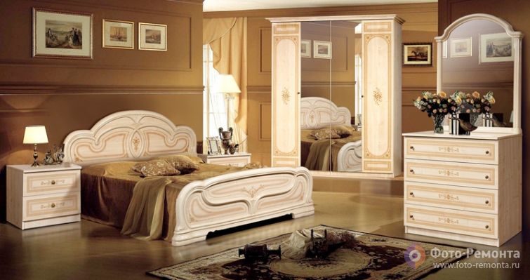 Бежевый спальный гарнитур Европа 11 - фото и цена
