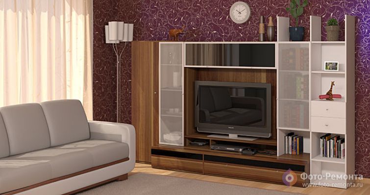 Стенки для гостиной фото - Оригинальная стенка для гостиной Сакура