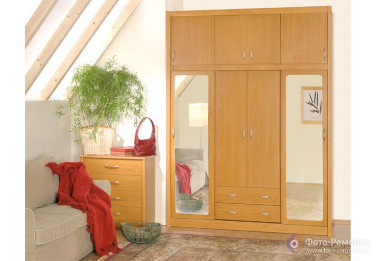 Для ценителей изысканности, простоты, практичности и комфорта предлагается шкаф-купе Берта-бис. Это четырехстворчатый шкаф с двумя зеркальными платяными отделениями по бокам и одним двухстворчатым отделением для белья посередине. Также имеются два нижние выдвижные ящики и четырехстворчатая антресоль в каждом отделении с полкой для белья.
