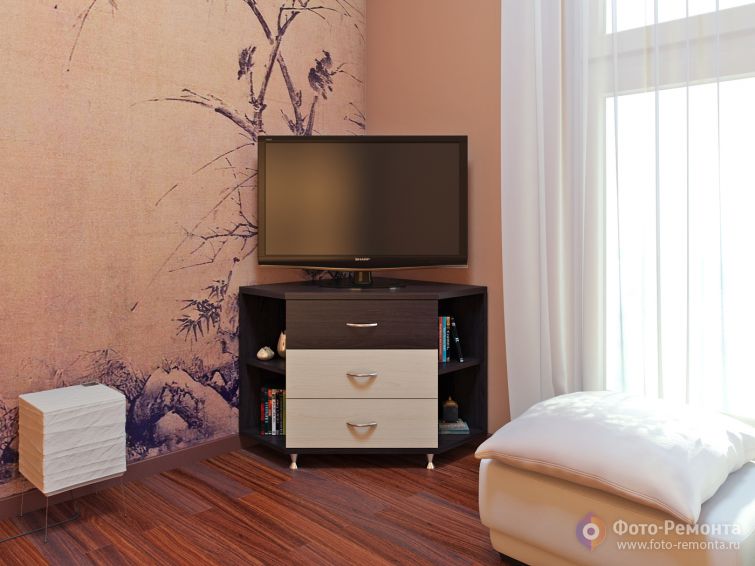 Угловой комод в цвете венге-клен вместительный и многофункциональный. Это отличное место для аккуратного хранения вещей. Изготовлен из ЛДСП.