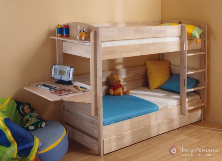 Кровать двухъярусная с ящиками и навесным столиком - фото и цена