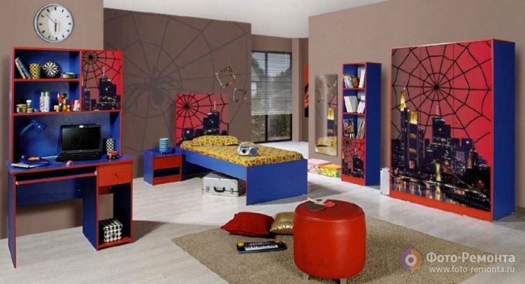 В детской мебели Spider (Спайдер) продумано все до мелочей, чтобы порадовать и обезопасить подрастающего супергероя. Качество мебели соответствует мировым стандартам, все модули производятся из экологически чистых материалов (ЛДСП, МДФ). Детская мебель Spider состоит из кровати, тумбы прикроватной, стола письменного + надстройки, стеллажа и 3-х створчатого шкафа.