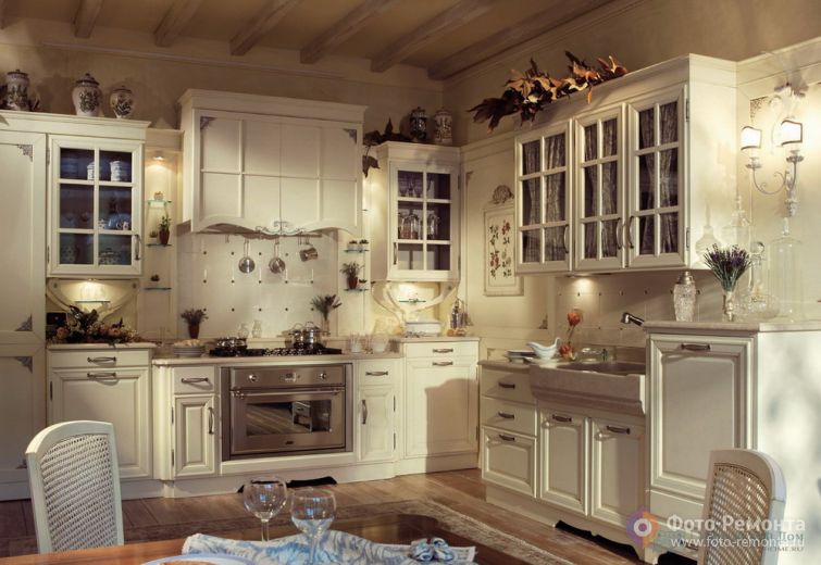 Светлая мебель для кухни Arcari в стиле прованс. Сочетание светлых тонов со стальными элементами декора придают кухне элегантность и привлекательность. Кухня Arcari сделана из прочного Итальянского массива, что предает особую прочность кухонному гарнитуру.